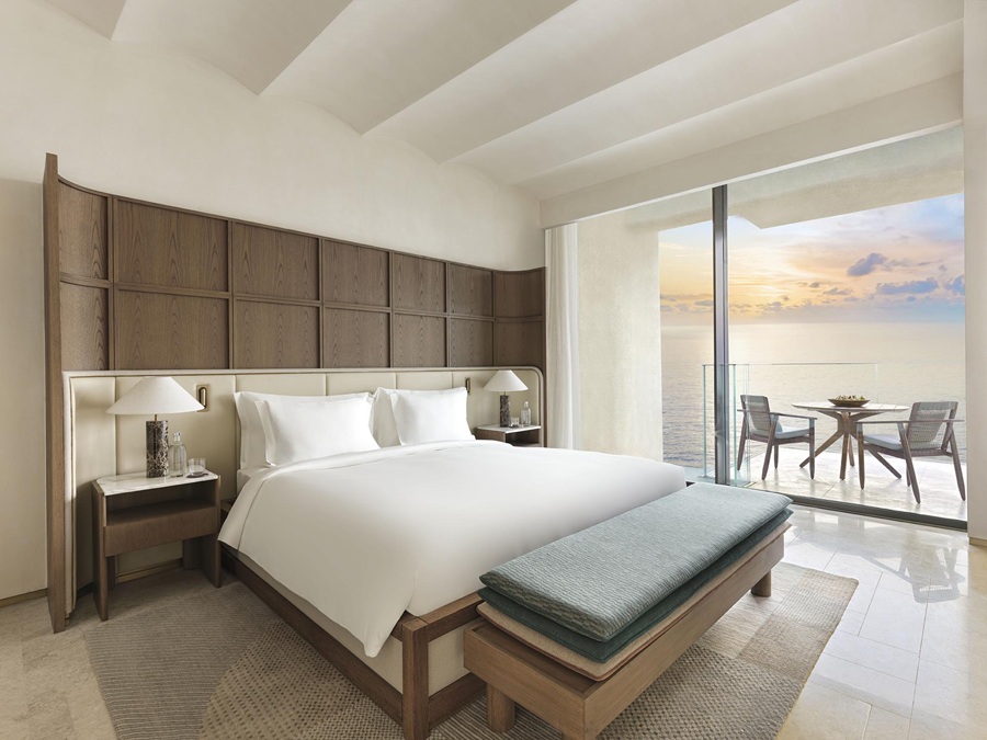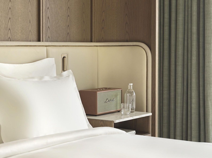 Kontrastprogramm zu all den Bettenburgen: nur 61 Suiten zählt das Boutique-Resort, das durch 172 private Residenzen ergänzt wird. Der Clou des Konzeptes: Gäste des Resorts und Bewohner der exklusiven Residences teilen sich den öffentlichen Raum der Anlage als gemeinsame Bühne, begegnen sich dort als Community: ob beim Dinner im japanischen Restaurant ganz oben im zehnten Stock, ob im mediterran-arabischen Fusion-Restaurant im Erdgeschoss, ob in den Bars, am Pool, im Kid‘s Club, im Game Room, der Bibliothek. Oder im exklusiven Six Senses Spa mit Longevity Clinic und Biohacking Room, das exklusiv den Gästen des Hauses – ob Resort oder Residenzen – zur Verfügung steht und Besuchern von außerhalb verwehrt bleibt. Über 5.500 Quadratmeter misst allein dieser Bereich, er ist so etwas wie die Herzkammer des Hotels. Als ob all die Entspannung dort ihren Anfang nimmt und aufs ganze Haus und seine Umgebung ausstrahlt.